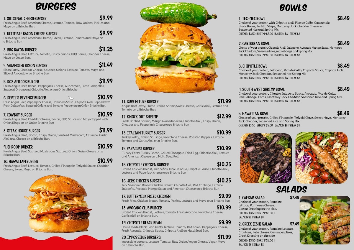 Fresh Broiled Shrimp, Mango Avocado Salsa, Chipotle Aioli, Crispy Onion, Cheddar and Pepperjack Cheese on a Brioche Bun